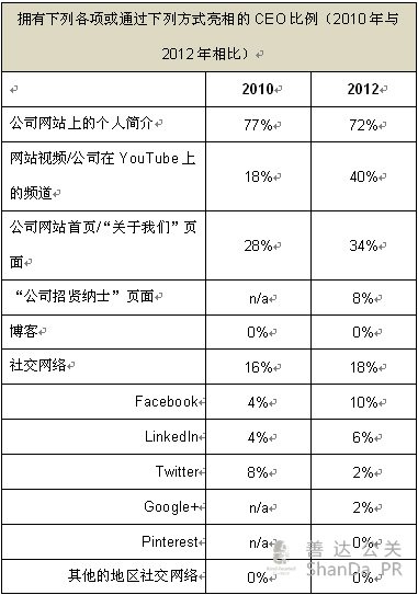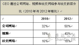 當(dāng)前位置 :善達(dá)首頁(yè) > 關(guān)于我們 > 善達(dá)知識(shí) > 上海公關(guān)公司:全球大公司CEO新媒體網(wǎng)絡(luò)社交力成倍提升