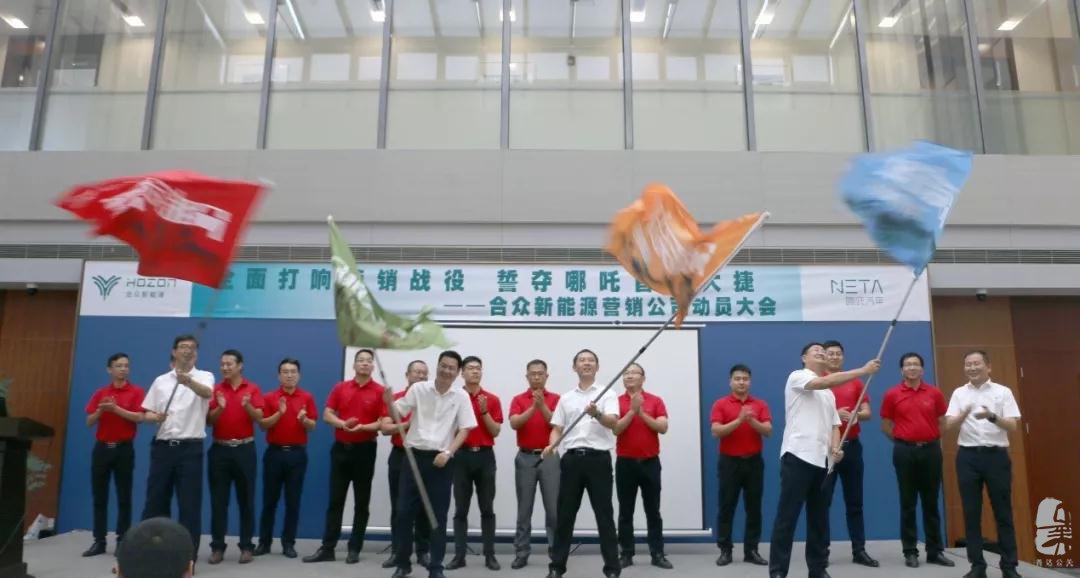 當(dāng)天的動(dòng)員大會(huì)上,合眾新能源副總裁兼營(yíng)銷公司總裁黃招根宣布,成立東部、南部、中部以及北部四大營(yíng)銷戰(zhàn)區(qū),并對(duì)相關(guān)人員進(jìn)行任命以及授旗儀式。黃招根表示,要以使命必達(dá)的信念,敢拼能贏的信心,與“哪吒”一起鬧海,打贏接下來的營(yíng)銷戰(zhàn)役。