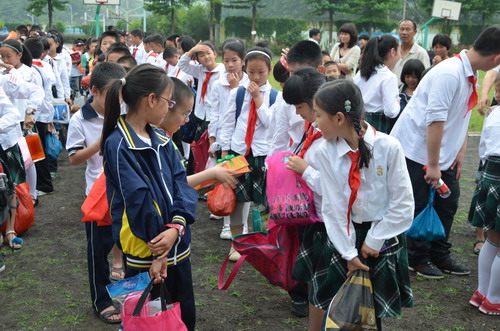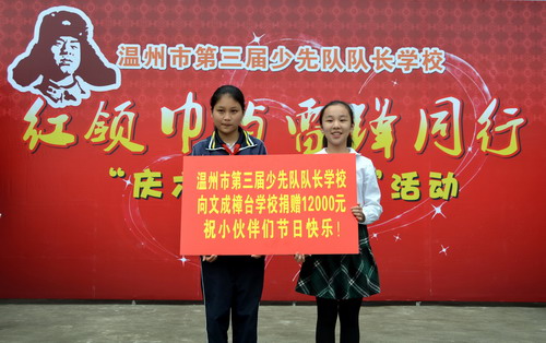 5月27日,溫州市第三屆少先隊(duì)隊(duì)長(zhǎng)學(xué)校130名學(xué)員到文成縣樟臺(tái)圣雄希望小學(xué)開展“紅領(lǐng)巾與雷鋒同行”系列活動(dòng)之“慶六一•送溫暖”手拉手結(jié)對(duì)活動(dòng)。