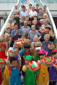 圖為“福、祿、壽、禧”送老人