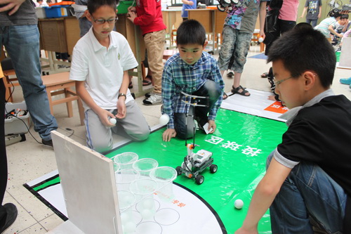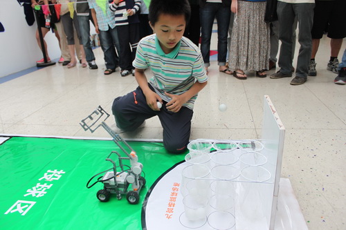 據(jù)了解,活動策劃,此次智能機(jī)器人大賽選取的項目是九宮格籃球比賽。參賽隊伍以兩個或者三個孩子為一組,他們將編程好的機(jī)器人放在起始區(qū),然后機(jī)器人攜帶乒乓球出發(fā),到達(dá)投球區(qū)后,三分鐘內(nèi)將球依次投入9個籃筐完成比賽。