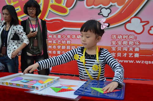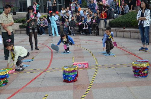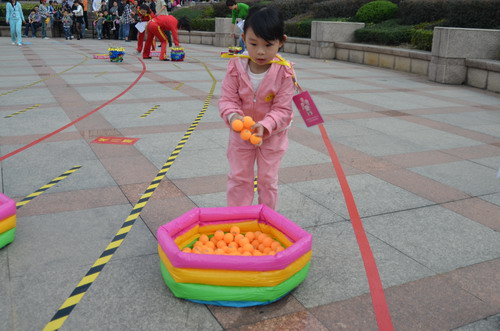 10月30日上午,“寶貝向前沖”2011年溫州十佳寶寶才藝大賽的第二項(xiàng)比賽活動(dòng)“寶貝闖關(guān)賽”在中心下沉式廣場(chǎng)進(jìn)行。本次比賽分大班、中班、小班三個(gè)組別,選手們需過投球關(guān)、比比誰捧的多、智慧樹、算數(shù)小專家、七巧板創(chuàng)意五關(guān),以獲得笑臉卡數(shù)量多少和闖關(guān)后速度的快慢來評(píng)選各級(jí)段十佳小選手。參加本次活動(dòng)的對(duì)象均由中心各項(xiàng)目推選出的優(yōu)秀學(xué)員組成。