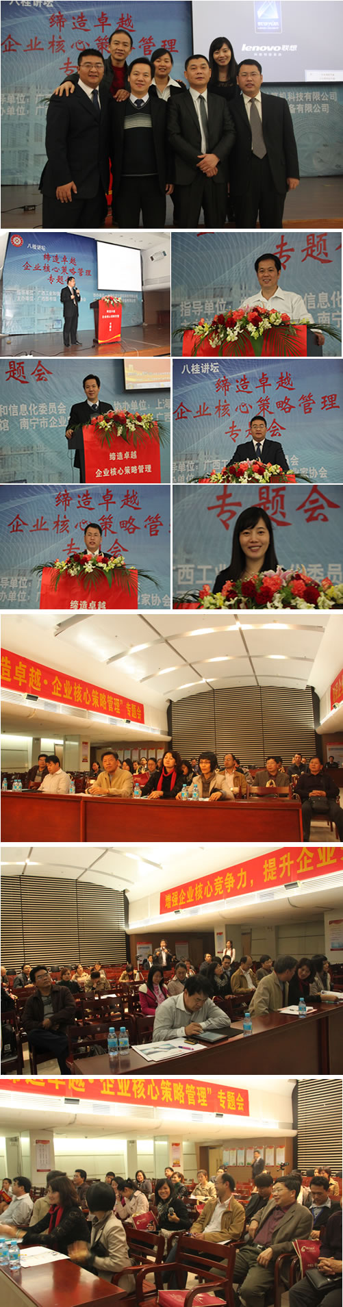 安凌軟件再次攜手南寧中小企業(yè)協(xié)會(huì)以及廣西宏達(dá)機(jī)電設(shè)備有限公司在南寧召開(kāi)“締造卓越—企業(yè)核心策略管理”論壇,旨在將一種新型的營(yíng)銷管理模式傳播分享給南寧智慧的企業(yè)家們,中小企業(yè)協(xié)會(huì)相關(guān)領(lǐng)導(dǎo)高度關(guān)注與重視此次論壇,并在論壇致辭,論壇就如何在企業(yè)內(nèi)打造出高績(jī)效的營(yíng)銷管理平臺(tái)和管理團(tuán)隊(duì)進(jìn)行了深入的分享與探討! 本次研習(xí)會(huì)邀請(qǐng)到國(guó)內(nèi)最頂尖的數(shù)據(jù)庫(kù)營(yíng)銷管理專家吳發(fā)東老師作激情分享,培訓(xùn)期間,南寧的企業(yè)家,熱情高漲,踴躍分享,認(rèn)真學(xué)習(xí),反響熱烈,深刻的認(rèn)識(shí)到客戶和員工的管理對(duì)企業(yè)經(jīng)營(yíng)管理的重要性;紛紛表示,學(xué)習(xí)后一定要全面貫徹落實(shí)吳發(fā)東老師的管理思想和方法,活動(dòng)策劃,結(jié)合管理工具真正的執(zhí)行到團(tuán)隊(duì)中,真正做到落地,提高客戶的滿意度及員工的執(zhí)行力,實(shí)現(xiàn)領(lǐng)導(dǎo)自我解放、員工更輕松、更賺錢,讓企業(yè)資源價(jià)值最大化!;