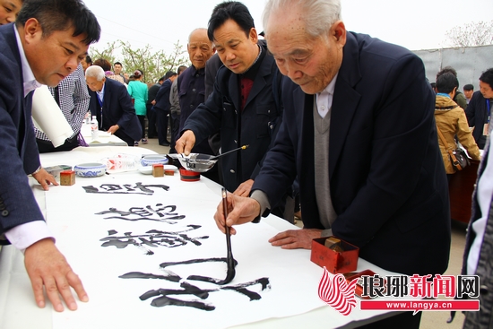 活動(dòng)舉辦之期正逢聞名全國的“魯南桃鄉(xiāng)”、“臨沂城后花園”李官鎮(zhèn)3.3萬畝桃花盛開的季節(jié),花香伴墨香格外引人入勝。書畫家們現(xiàn)場激情煥發(fā),揮毫潑墨,丹青頌盛世、翰墨書豪情。當(dāng)天,上千名市民慕名而來,將提前備好的宣紙攥在手中,耐心排著長隊(duì),等待書畫家為自己寫一幅祝福的字畫。正在排隊(duì)的李先生告訴記者,他是從市里大老遠(yuǎn)趕來的,就想找位書法家求一幅有關(guān)家庭幸福的字,“聽說今天來的都是大家,所以就專門來求張字掛在家中,增添和睦的氣氛。”“我的姥姥今年90周歲了,為了祝愿她能長命百歲,我想請(qǐng)書法家為姥姥寫個(gè)大‘壽’字作為今年的生日禮物。”市民劉女士歡喜地說。