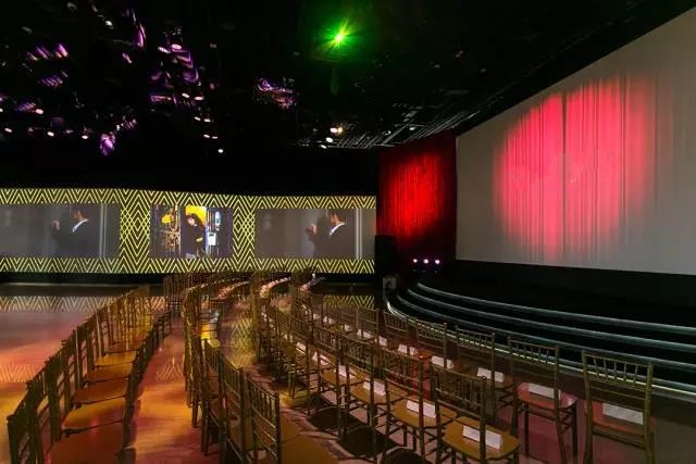 現(xiàn)代藝術(shù)裝飾搭配黑、金色調(diào),營造出舊時代下的好萊塢電影院氛圍。
