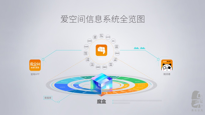 魔盒不是愛空間的一個具象產(chǎn)品,而是對19個系統(tǒng)和3個APP的統(tǒng)稱。它是愛空間所有系統(tǒng)的中央處理器,是實現(xiàn)裝修全流程信息化管理的“最強大腦”,其全面打通了客戶端、工人端、企業(yè)管理端等所有環(huán)節(jié)。用戶端-愛空間APP是省心裝修的“神器”、產(chǎn)業(yè)工人端-熊師傅A(chǔ)PP是工人師傅的工作管理全能“助理”、運營管理端-愛聊兒APP是全服務(wù)鏈14個職能角色(設(shè)計師、項目管家、工程經(jīng)理等)的“超級工作臺”。魔盒系統(tǒng)的誕生,實現(xiàn)了移動互聯(lián)時代下,用一部手機搞定裝修全過程,真正讓裝修變得透明,高效,簡單,靠譜。