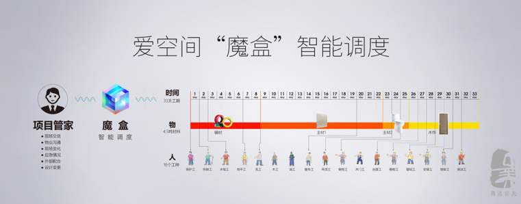 在家裝行業(yè),每一個流程、步驟、人員、物料等等全部實現(xiàn)“信息化”其實并不簡單:如何把裝修過程中運用到的600多個SKU材料,重量達4.5噸的物資、涉及到的幾十號人(工人、管家、設(shè)計師、物業(yè),還有業(yè)主自己選擇的工程服務(wù)人員),通過信息化技術(shù)把它們有機組合在一起,讓專業(yè)人士在業(yè)主家里高效精準地完成施工工作——這是陳煒和愛空間需要著力去解決的問題。