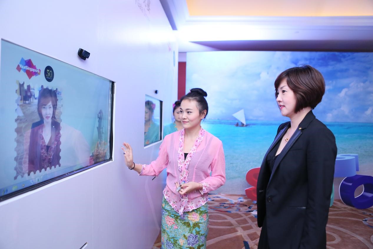 禮儀帶領(lǐng)嘉賓電子拍照簽到,照片做為見(jiàn)證新加坡旅游局50周年的紀(jì)念