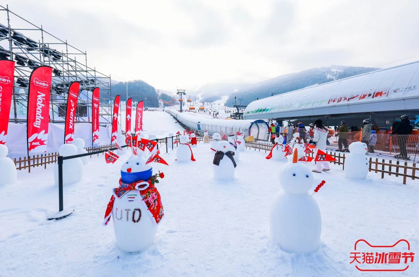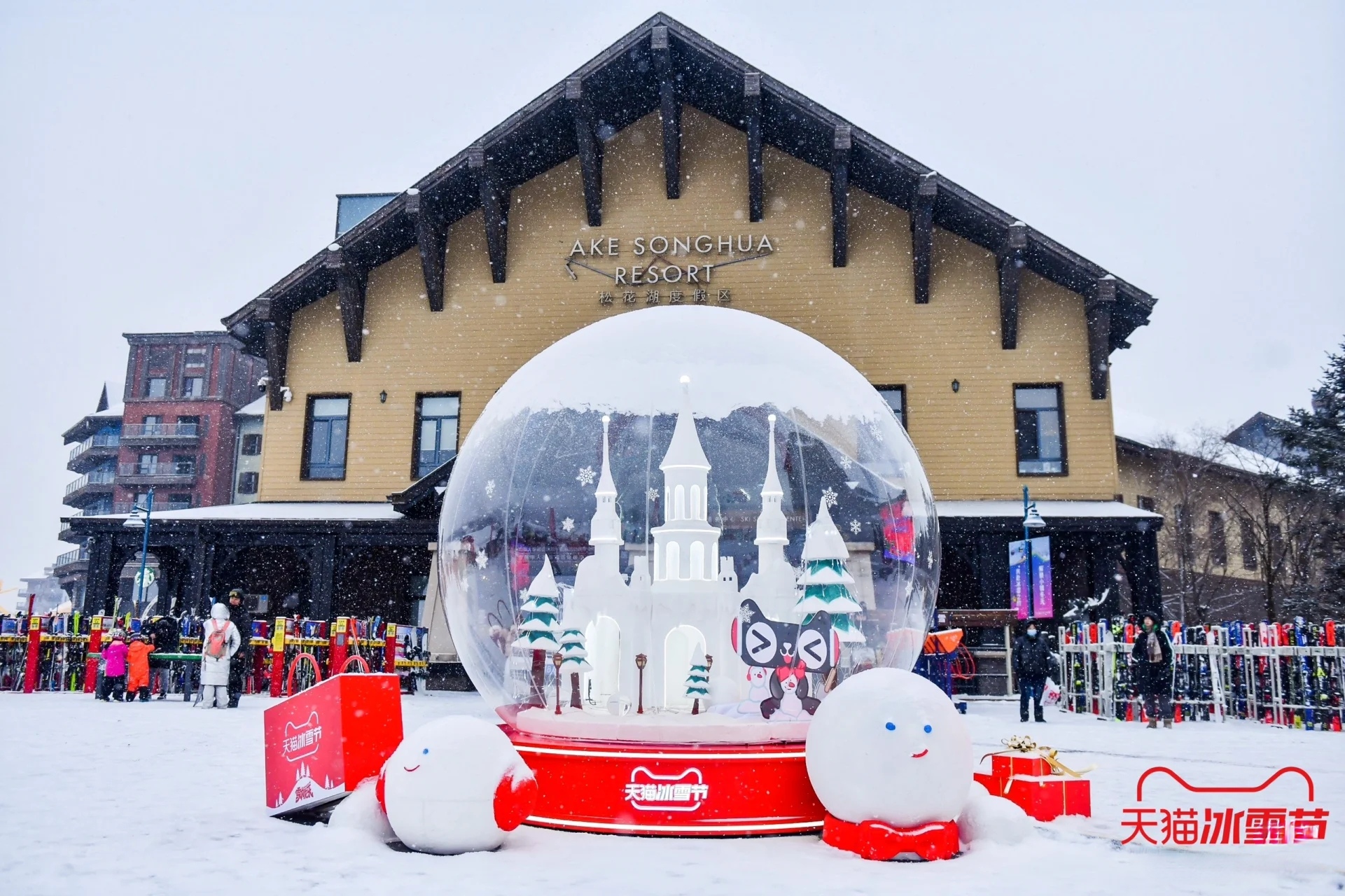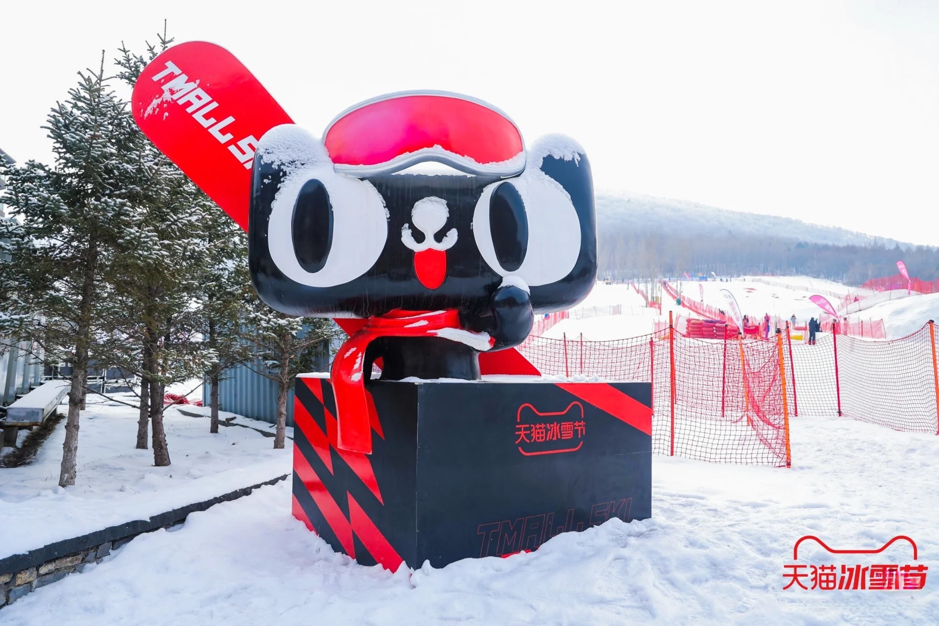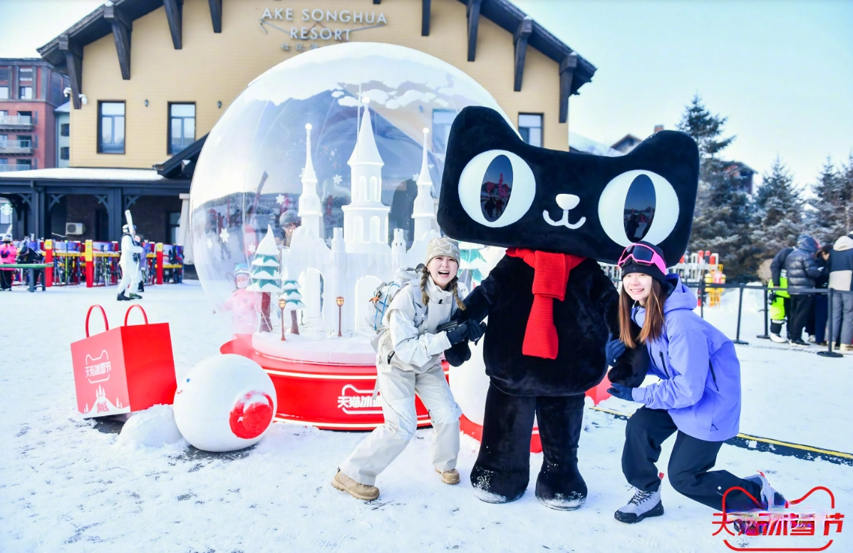 亮點(diǎn)描述:天貓冰雪節(jié)在吉林市松花湖滑雪度假區(qū)設(shè)置了巨型顯眼貓頭裝置,這一標(biāo)志性的設(shè)計(jì)不僅吸引了大量游客的目光,也成為了現(xiàn)場(chǎng)拍照打卡的熱門(mén)地點(diǎn)。貓頭裝置以冰雪為材料,結(jié)合現(xiàn)代藝術(shù)手法,展現(xiàn)了天貓品牌的獨(dú)特魅力。