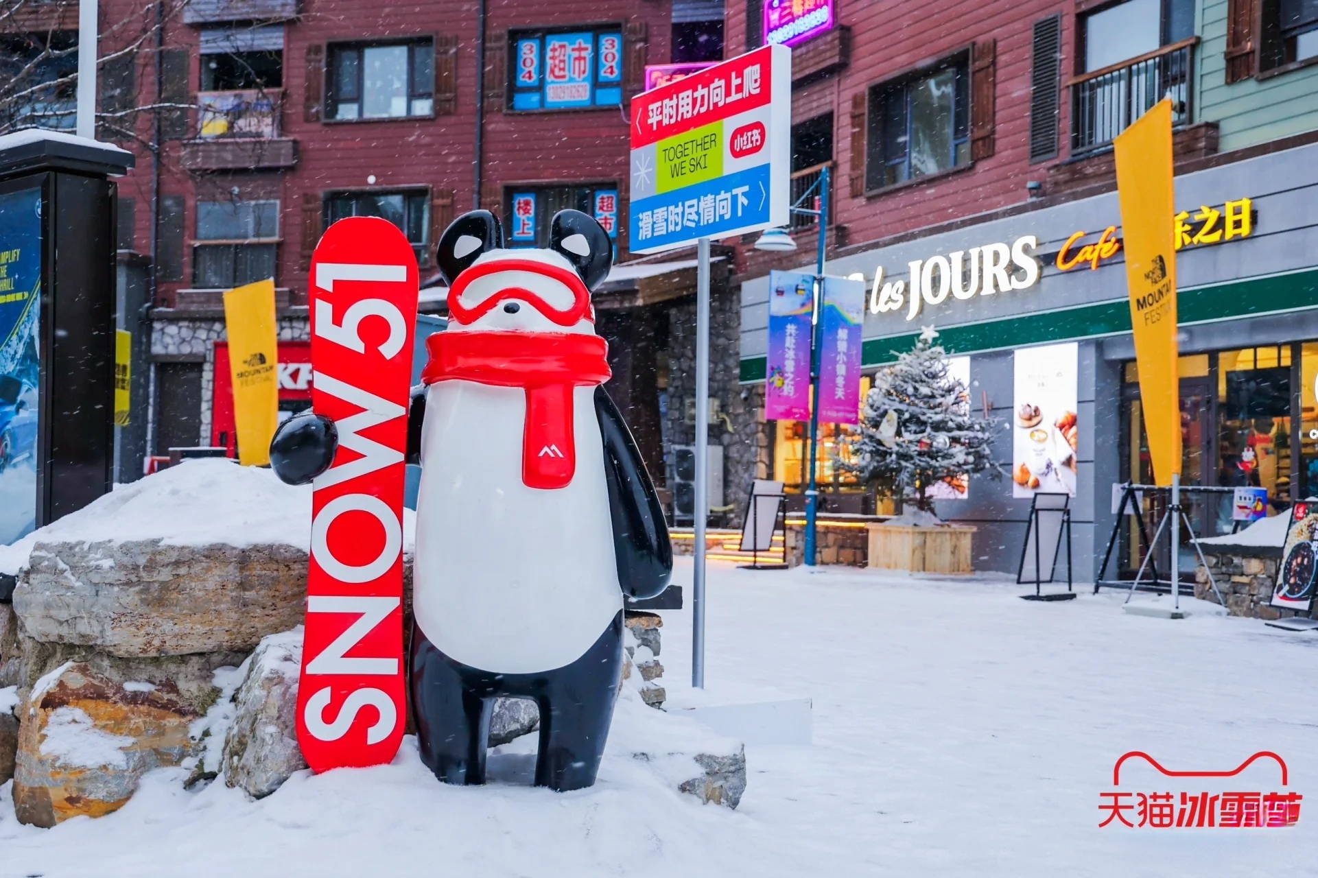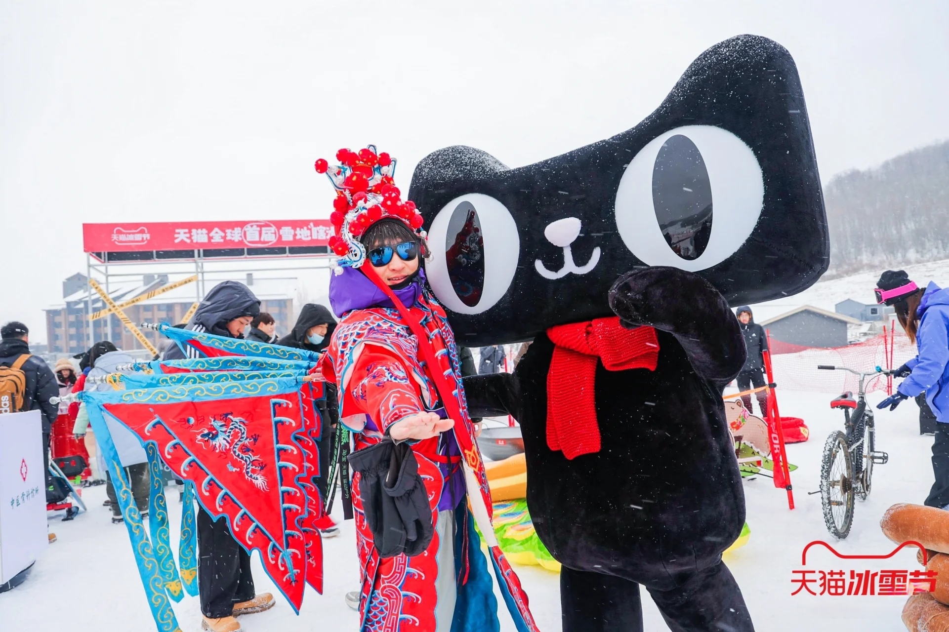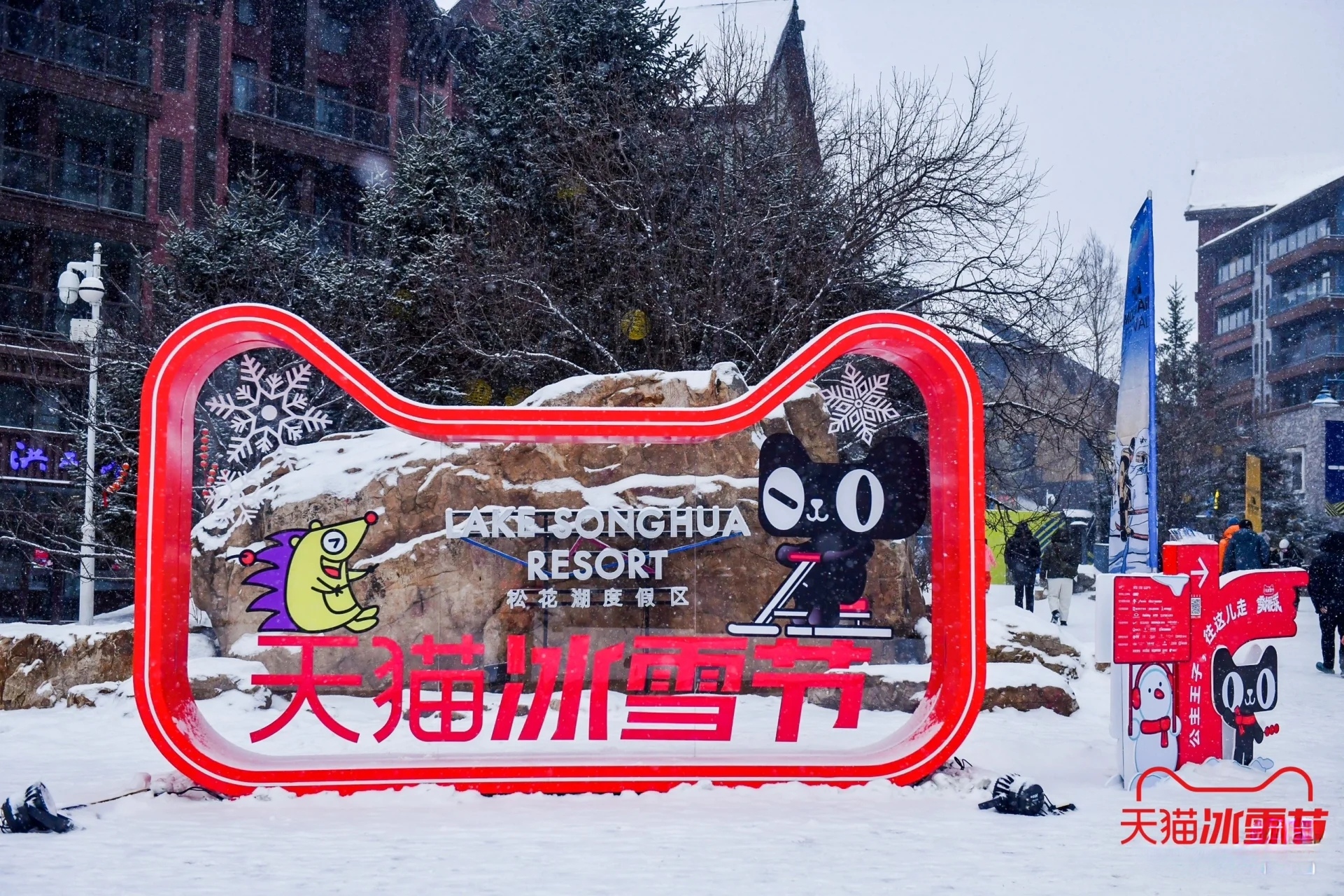 亮點(diǎn)描述:天貓冰雪節(jié)在吉林市松花湖滑雪度假區(qū)設(shè)置了巨型顯眼貓頭裝置,這一標(biāo)志性的設(shè)計(jì)不僅吸引了大量游客的目光,也成為了現(xiàn)場(chǎng)拍照打卡的熱門(mén)地點(diǎn)。貓頭裝置以冰雪為材料,結(jié)合現(xiàn)代藝術(shù)手法,展現(xiàn)了天貓品牌的獨(dú)特魅力。