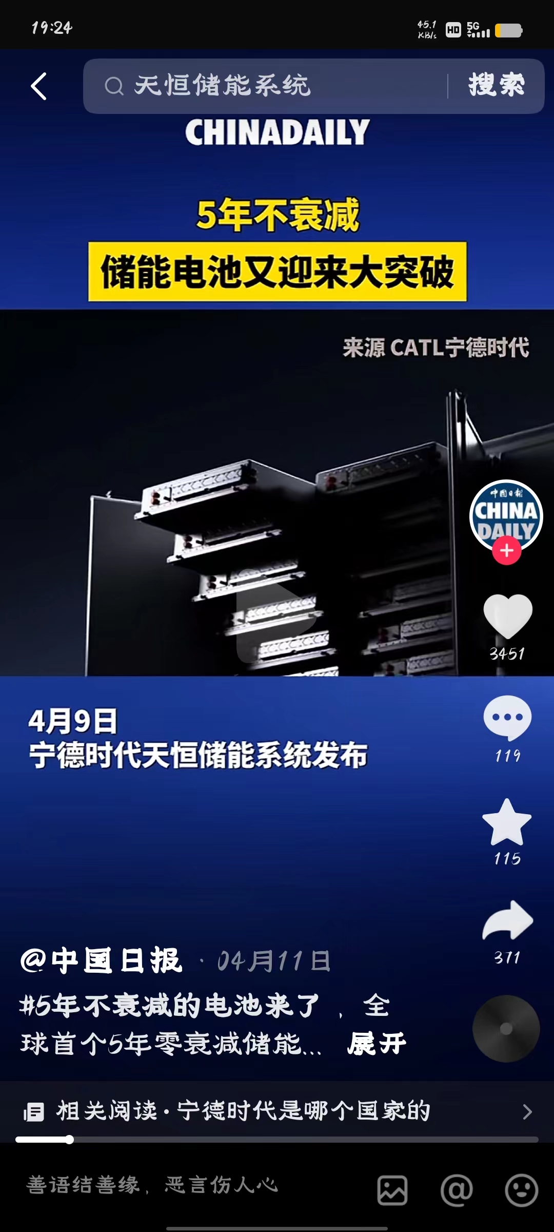 除了產(chǎn)品本身的亮點(diǎn)外,寧德時(shí)代在發(fā)布會(huì)上還展示了其在儲(chǔ)能技術(shù)領(lǐng)域的深厚積累和創(chuàng)新能力。公司通過不斷的技術(shù)創(chuàng)新和優(yōu)化,實(shí)現(xiàn)了鋰電池壽命的顯著提升,達(dá)到了驚人的15000次實(shí)驗(yàn)室循環(huán)。這一成果不僅體現(xiàn)了寧德時(shí)代的研發(fā)實(shí)力,也為整個(gè)儲(chǔ)能行業(yè)的發(fā)展注入了新的活力。