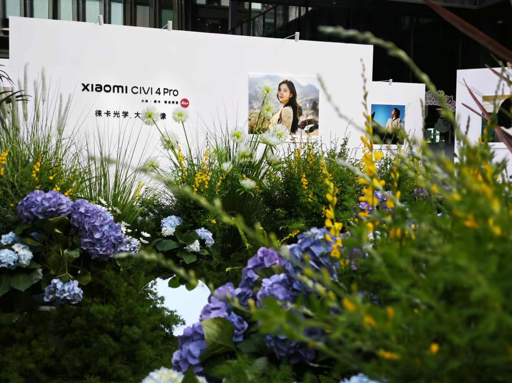 現(xiàn)場(chǎng)設(shè)置了多個(gè)精美的拍照?qǐng)鼍埃ǔ绷髡歧R人此沙、張婧儀和周雨彤的人像照展示區(qū),以及多張使用小米Civi 4 Pro人像模式拍攝的照片作為拍照背景板。