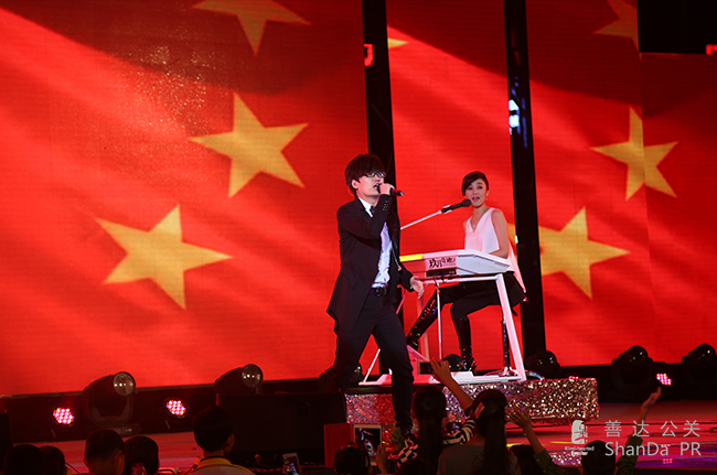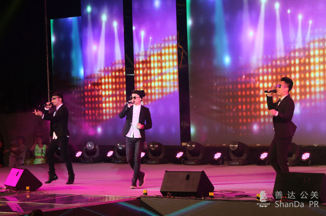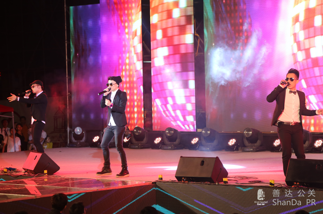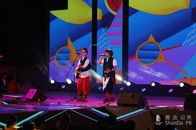 ,除了白天的隆重儀式,還有晚上的文藝晚會(huì),特邀嘉賓有蘑菇兄弟、玖月奇跡等明星到場(chǎng)祝賀。