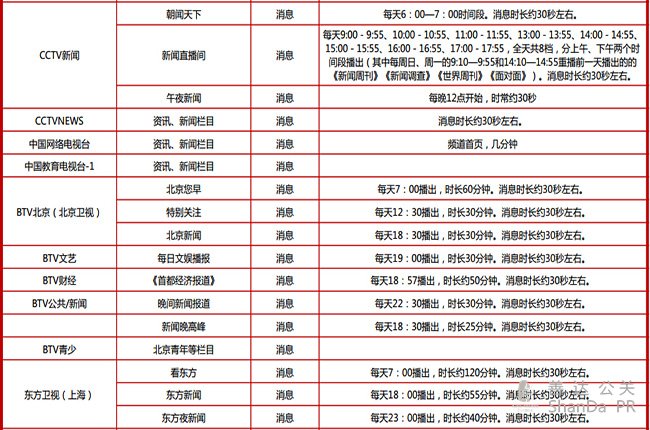 當(dāng)前位置 :善達(dá)首頁 > 活動(dòng)自媒體 > 海內(nèi)外媒體通稿 > 電視廣播媒體資源